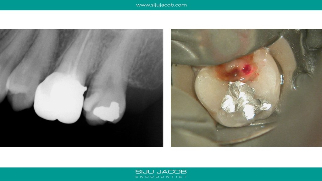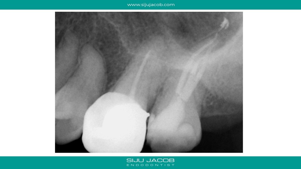 We often see maxillary second molars, which, at first glance seem to have just 2 canals, one Buccal and one palatal. A closer examination of the Buccal canal will often reveal bifurcation into two canals, DB and MB. Here is one such case.