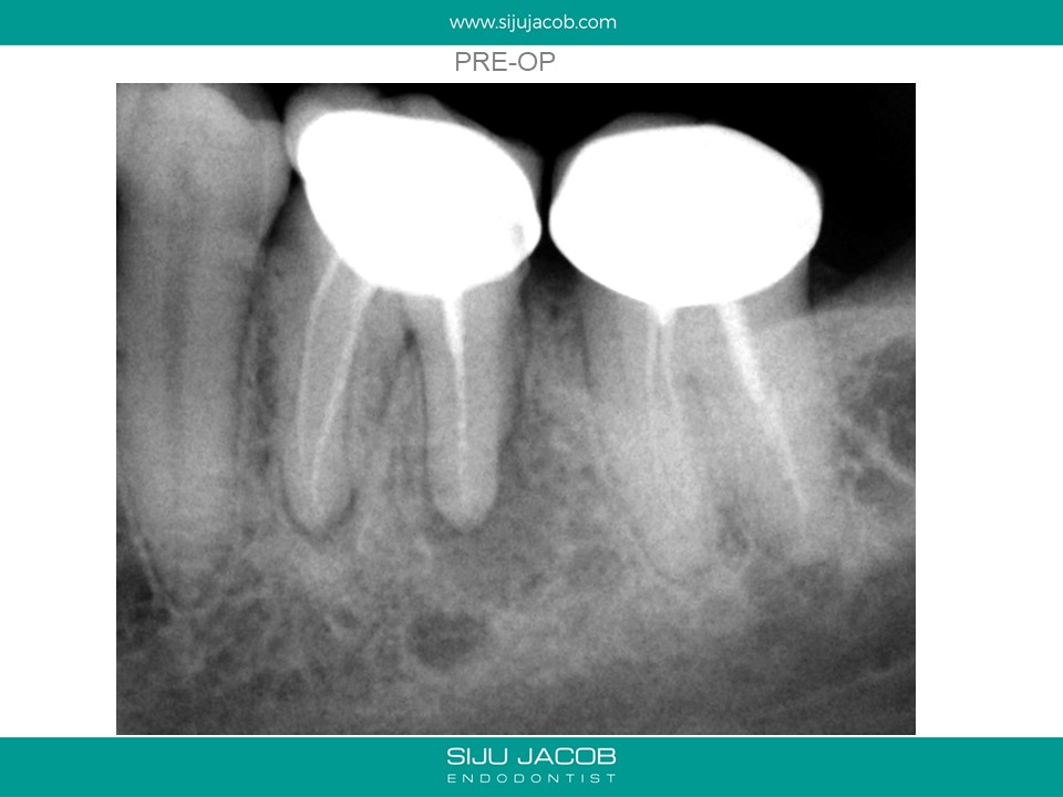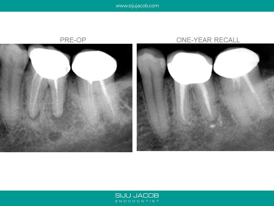 Written by Siju JacobApril 13, 2020 Molar Re-treat with large lesion This patient came with an acute abscess. Disassembly and re-treat with long term Caoh. One year recall shows healing. Share this: Click to share on X (Opens in new window) X Click to share on Facebook (Opens in new window) Facebook Like Loading... Related Leave a comment Cancel reply Δ
