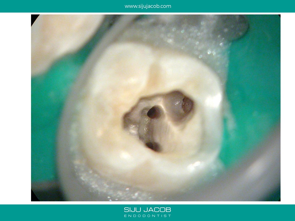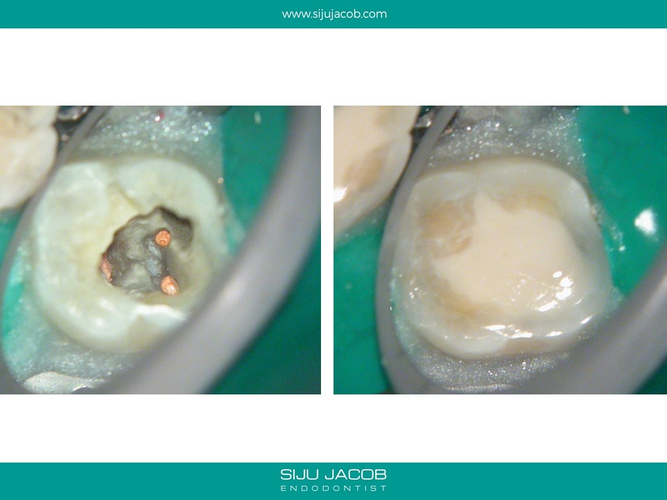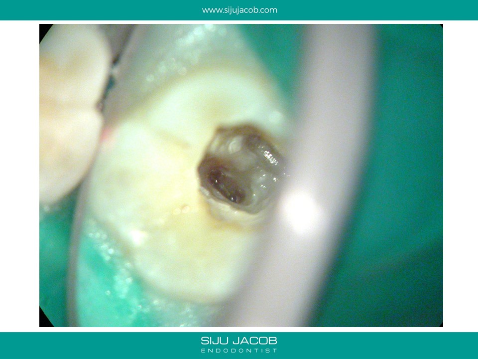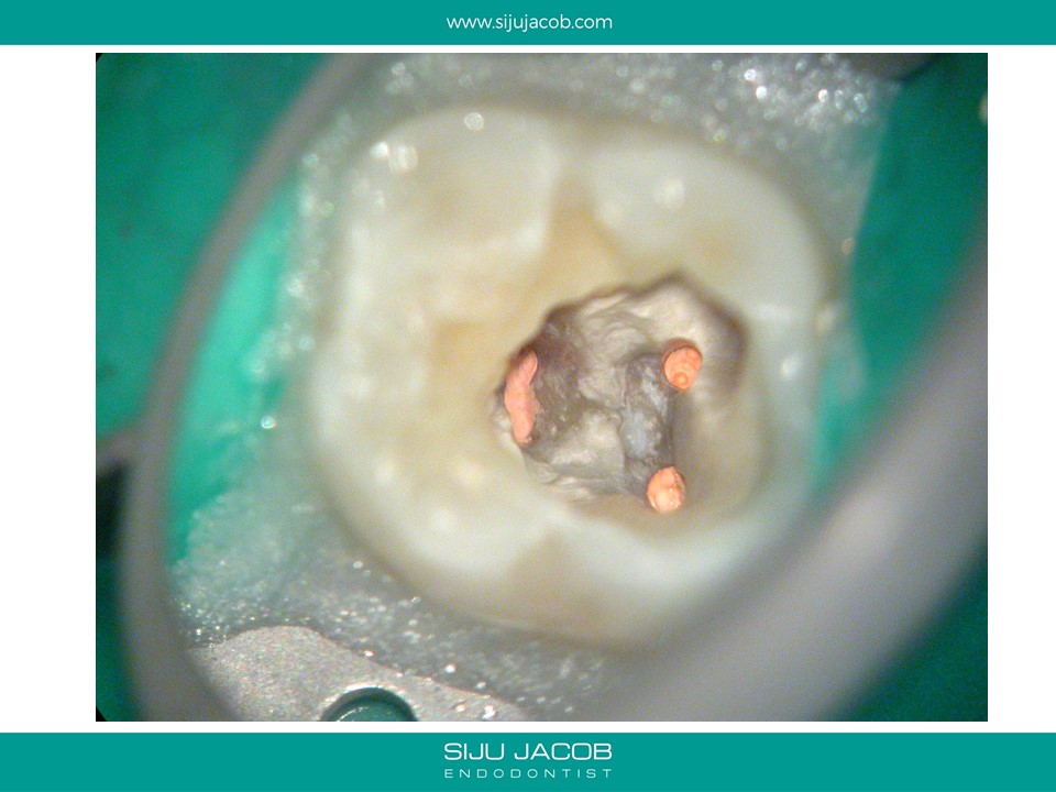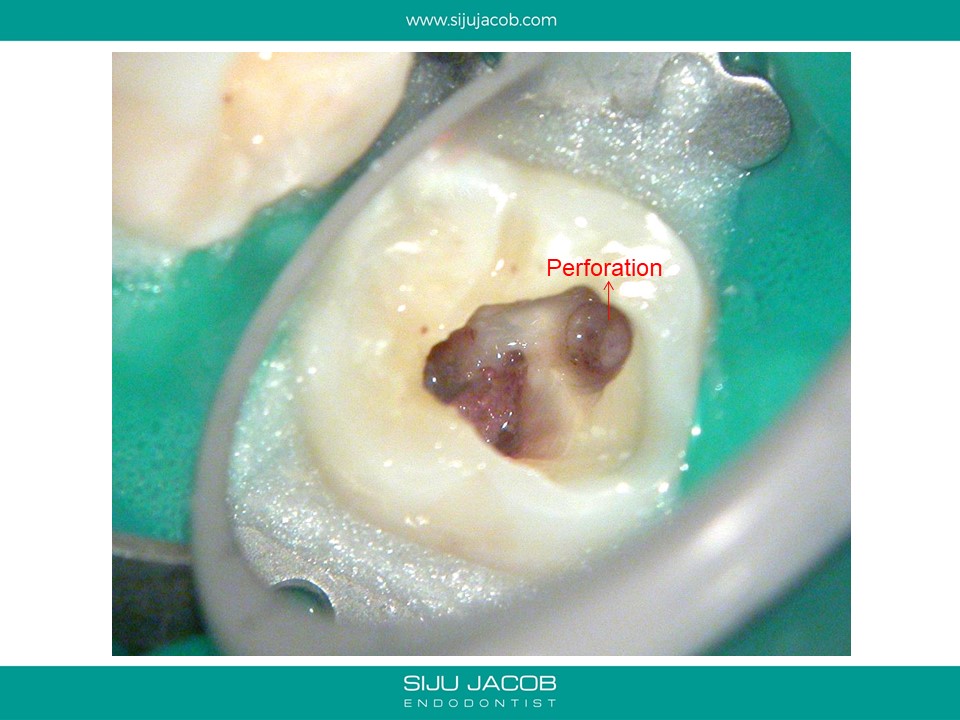 Whenever I get a case started by someone else, I warn the patient about the fact that I’m not really sure what the previous practitioner has done. Most times, the damage isn’t that bad. Occassionally, we get surprises like this one: A perforation.