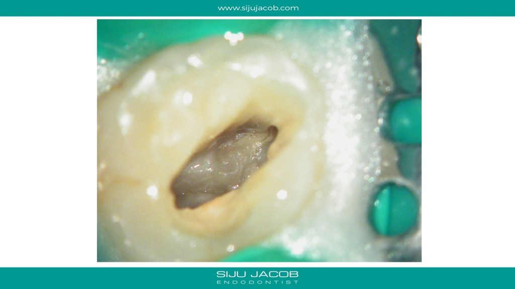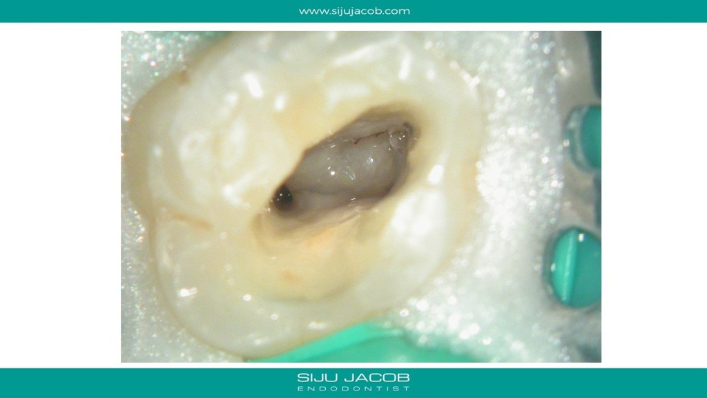 - The “Dentinal map” on the pulpal floor can be used as a guideline to locate canals. The pulpal floor has a grayish tinge compared to the adjacent dentin which is more whitish. Canals are usually present at the intersection of these two colour zones. These can be used to detect the presence of canals.
