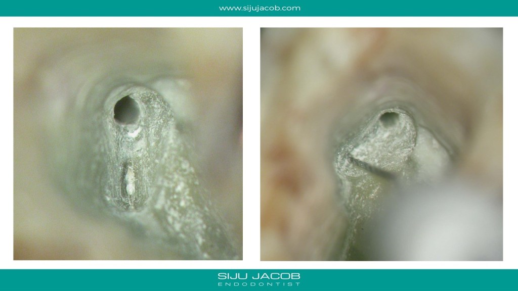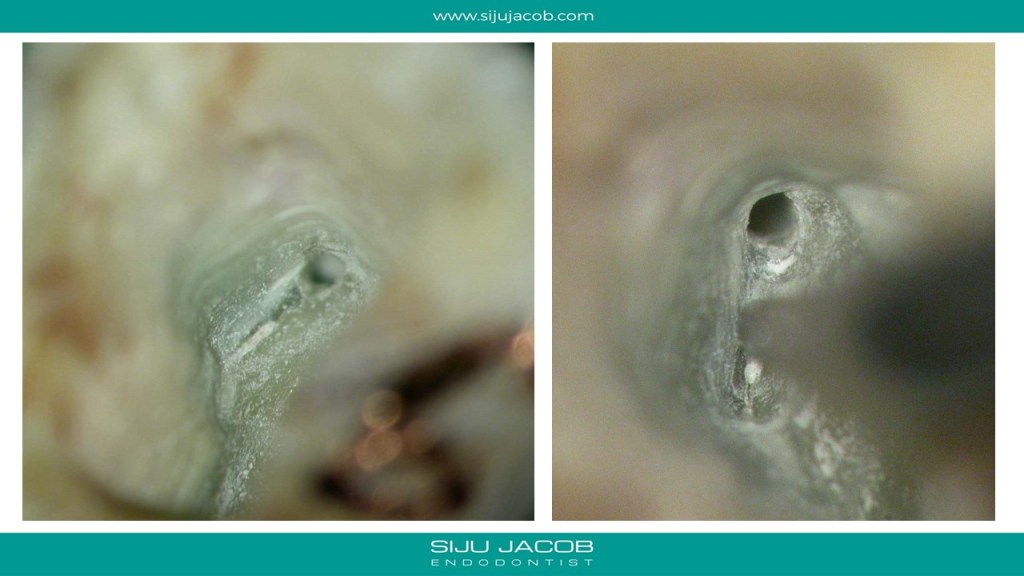 2. The white line test: I first heard this terminology from Cliff Ruddle. Often, Necrotic tissue and debris form a white line adjacent to the mb1 canal which can be used to trace the Mb2.