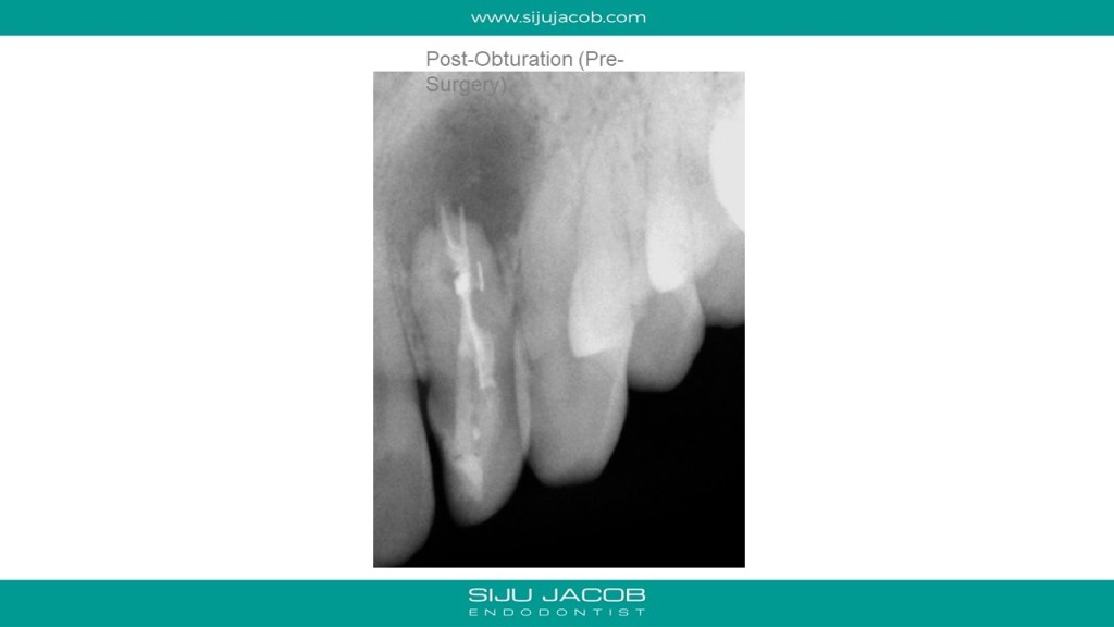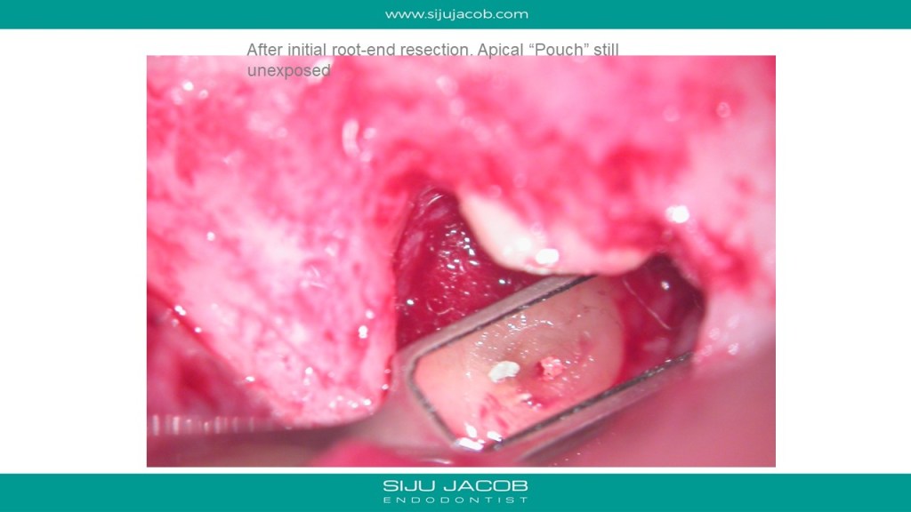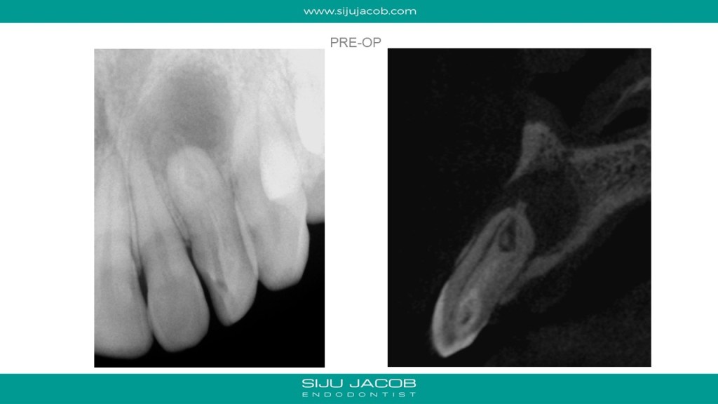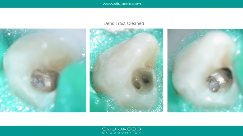 This case was done in single visit. The patient was the brother of an Endodontist and flew in from Hyderabad for treatment. I did the orthograde endo followed by immediate apical surgery. In the orthograde part, I filled the Dens tract and the canal. I then raised a flap, resected the apical part to expose the “pouch” of the dens. I used a pear shaped ultrasonic tip to clean the pouch and packed it with MTA. The patient flew back the same day and got the sutures removed in Hyderabad. A colleague, (Dr. Pavan Nallapati) send me a recall radiograph. At the 3 year recall, it seems to have healed and doing well. In hindsight, I felt i hurried through the orthograde part. when treating these cases, we inevitably leave behind a lot of anatomy untouched. I’m also thinking whether i can do these cases just surgically and leave the orthograde part as it is. I might do that the next time.