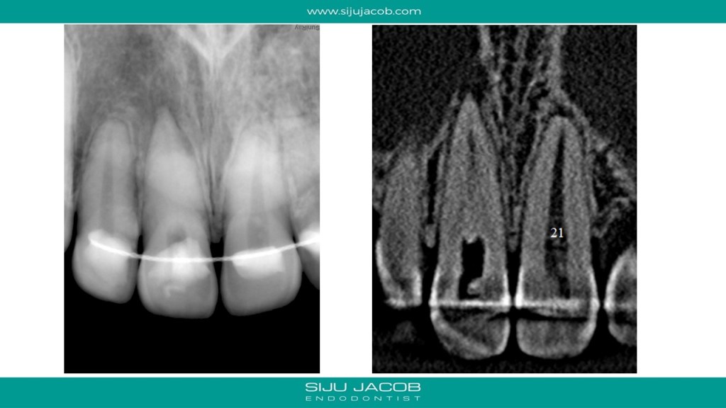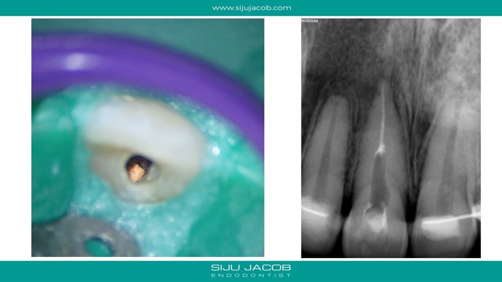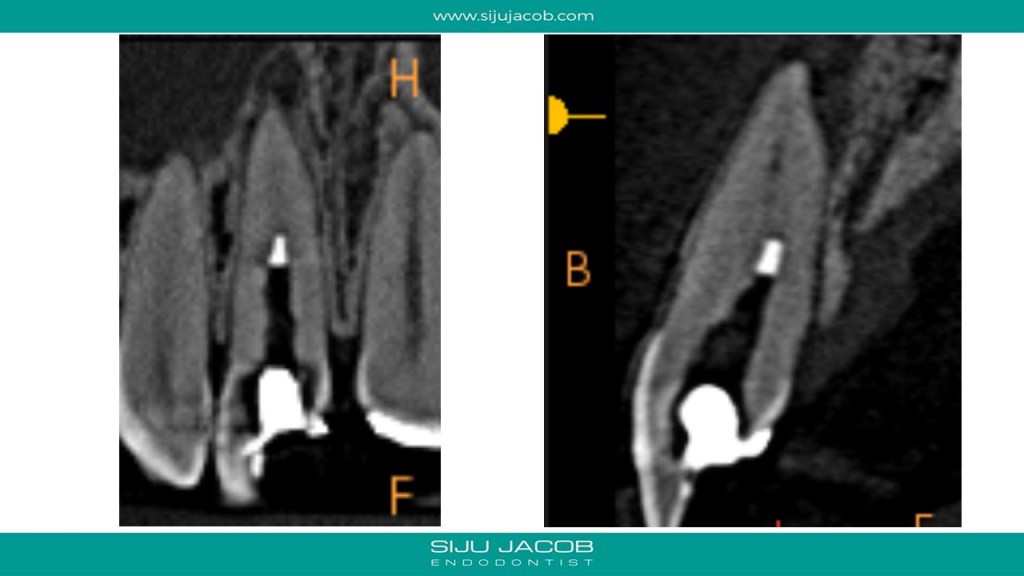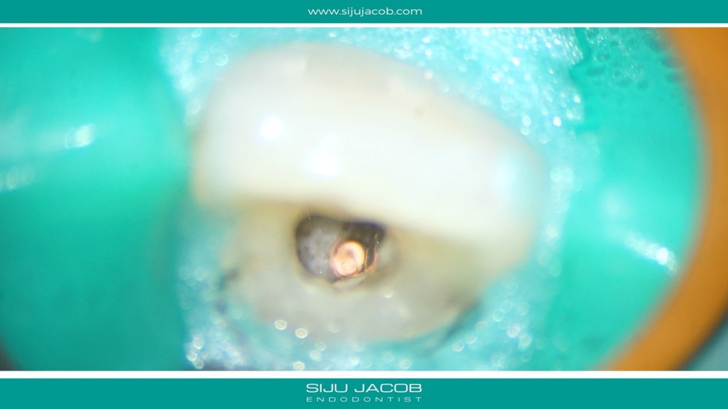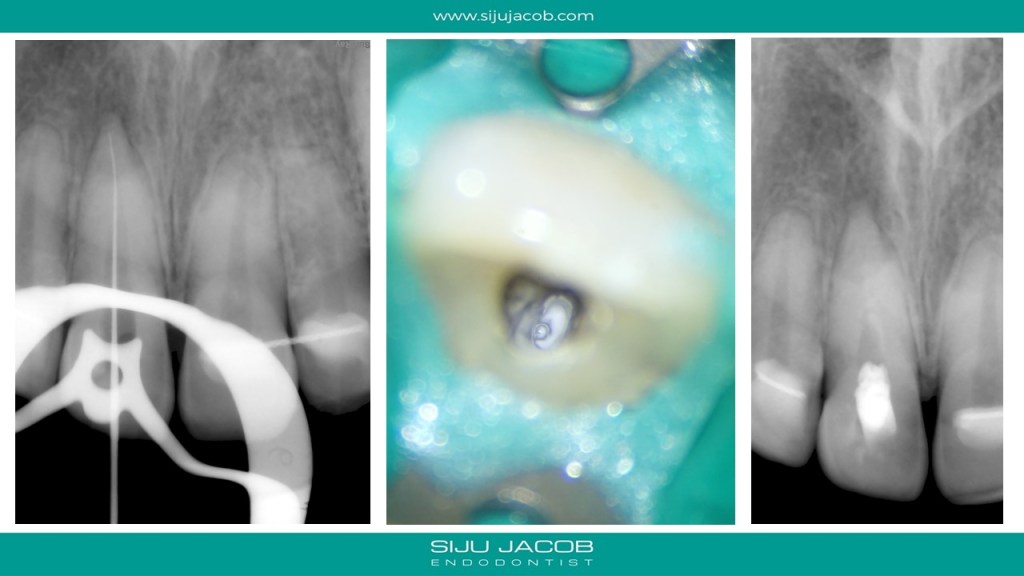 This case was calcified all the way to the apical one third. As we go deeper, the labio-palatal orientation becomes a problem and as we approach the apical part, the margin for error decreases. In this case, I took an inter-appointment CBCT to see the location of the canal. The video explains the whole process.
