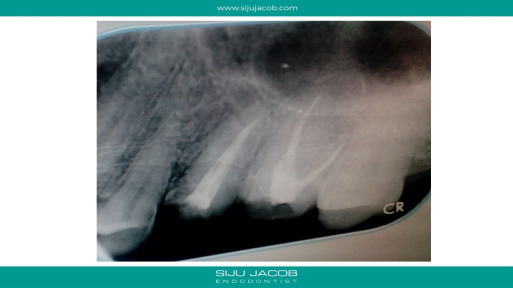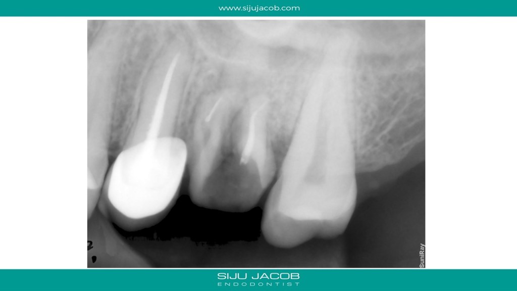I told her to come and see me for a consultation. I didn’t hear from her for a month. After a month, i received another mail saying that the dentist who did the earlier Root canals had offered to re-do both the root canals and she had gone ahead. She said that she still had discomfort in both teeth. She sent me these images.